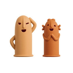 はにわの形の指サックです。「応援・サポート」をテーマにした表情豊かなはにわたちです。裏側(はにわの背中側)には紙をめくりやすいように凸凹の加工を施しており、突起で紙をしっかりキャッチできます。●材質/シリコーンゴム●寸法/(大):内径17mm×高さ44mm、(小):内径15mm×高さ41mm●入数/大・小各1個入●単位/1パック●単位/1パック(大・小各1個入)