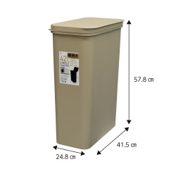 縦長でスリムなデザインでコンパクトで置く場所を選びません。シンプルなカラーとデザインでお部屋の雰囲気に馴染みやすい。ニオイ漏れしにくい、フタ付き仕様。●寸法/W415xD250xH580mm●材質/ポリプロピレン●種別/フタ横開き●容量/42L●カラー/ベージュ●単位/1個