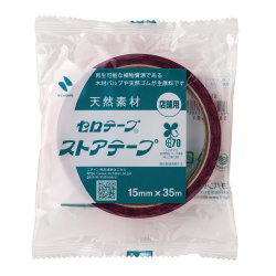 店舗での包装作業や簡易包装のお買い上げのマークに。紙を吸い上げにくいため、作業がしやすいです。手で切れますが、テープカッターを使用するとさらによく切れます。●基材/セロハン●粘着剤/ゴム系●サイズ/15mm×35m●テープ厚/0.05mm●単位/1巻