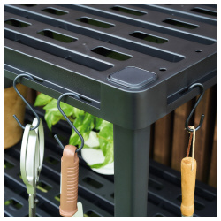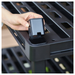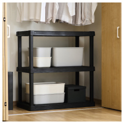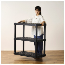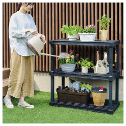 工具が不要で、脚パーツを組み立てるだけで簡単に組み立てができるプラスチックラック。樹脂製なので軽く持ち運びが簡単です。錆びる心配がないので、屋外でも安心してご使用いただけます。●寸法/約幅914×奥行450×高さ963mm●材質/ポリプロピレン●質量/約6.24kg●耐荷重/全体約90kg、棚板1枚あたり約30kg、フック部約2kg●棚板枚数/3枚●生産国/中国●単位/1台
