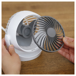 小型サイズの卓上扇風機。風量5段階調整可能。小型ながら大風量なジェット機能付き。上下90度角度調節可能。●寸法/約幅142×奥行110×高さ144mm●コード長さ/約1.4m●羽根径/9cm●機能/上下風向き角度調節(上90度、下90度、手動)●風量調節/5段階(微弱・弱・中・強・ジェット)●消費電力/約7W(最大)●カラー/ホワイト●保証期間/1年間●重量/約320g●生産国/中国●単位/1台
