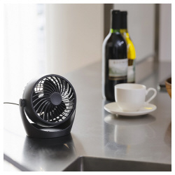 小型サイズの卓上扇風機。風量5段階調整可能。小型ながら大風量なジェット機能付き。上下90度角度調節可能。●寸法/約幅142×奥行110×高さ144mm●コード長さ/約1.4m●羽根径/9cm●機能/上下風向き角度調節(上90度、下90度、手動)●風量調節/5段階(微弱・弱・中・強・ジェット)●消費電力/約7W(最大)●カラー/ブラック●保証期間/1年間●重量/約320g●生産国/中国●単位/1台