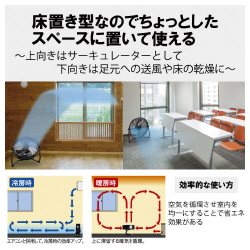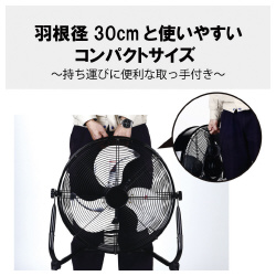 丈夫で耐久性のあるアルミ羽根を採用。筒形のハウジング構造により、風を直進的に飛ばし、部屋の空気を効率良く循環させる。過熱・過電流を保護するサーマルプロテクター付き。●寸法/約幅585×奥行270×高さ575mm●コード長さ/約1.8m●羽根径/45cm●機能/上下風向き角度調節(手動、360度)●風量調節/3段階(弱・中・強)●消費電力/117/128W●カラー/ブラック●付属品/ベース×1、ベースアーム×2●重量/約4.9kg●運転音/66・69dB●生産国/フィリピン●単位/1台