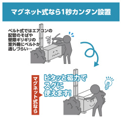 工具不要のエアコン室外機用カバー。ベルトレスで置くだけ設置。直射日光を防ぎ、室外機の温度上昇を抑える。省エネ対策、電気代をお得に。好みのサイズに切れるフリーカット仕様。●寸法/約幅840×奥行400×厚さ15mm●材質/アルミ蒸着フィルム、発泡ポリエチレン、マグネット、ポリカーボネート●重量/210g●耐熱温度/70度●取付方法/マグネット式●単位/1枚