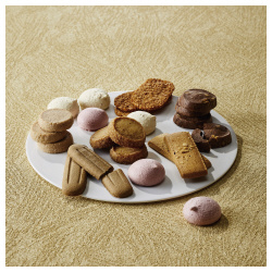 バターの香り豊かに、香ばしく焼き上げたクッキーです。●パッケージ寸法/212×295×54mm●セット内容/8種35個(ココナッツ4個、チョコレート4個マカロン6個、ラズベリーマカロン6個、イチジク4個ヘーゼルナッツ3個、カフェ4個、苺4個)●商品重量/420g●単位/1箱(35個入)