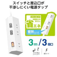 電源タップ 3m 3個口 個別スイッチ ホワイト