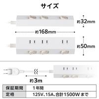 | 商品名 | 電源タップ 3m 3個口 個別スイッチ ホワイト |