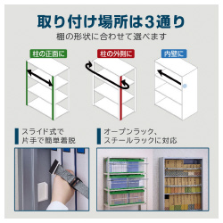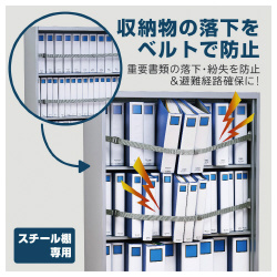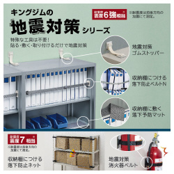 収納棚に取り付けることで地震発生時の収納物落下を防止します。収納物落下による怪我防止対策だけでなく、避難経路確保や重要書類などの紛失防止にも繋がります。収納棚の幅に合わせて選べる2種類のラインアップ!●質量/ロックホルダー×2個約30g、ベルトフック付きベルト×1本約56g●外形寸法/ロックホルダー:約52(W)×49(L)×12(D)mm、ベルト幅:25mm●主な材質/ベルト:PP、ベルトフック:PC・ABS樹脂・等方性マグネット、ロックホルダー:ABS樹脂●耐震度/震度6強相当※●セット内容/本体(ベルトフック付きベルト×1本、接着パッド付きロックホルダー×2個)、アルコールパッド×2枚、取扱説明書●単位/1セット(4本)