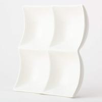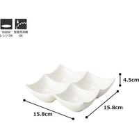 間仕切りというより、小さな器をつなげたようなユニークなかたち。薬味いれや、ビュッフェ料理もすっきり取り分けることが出来ます。艶感のあるエレガントな白は、おもてなしの席にぴったりです。●カラー/ホワイト●寸法/15.8×15.8×H4.5cm●重量/380g ●材質/陶器●電子レンジ対応/可(1000W)●食洗機対応/可●生産国/中国●単位/1セット(3個入)