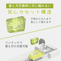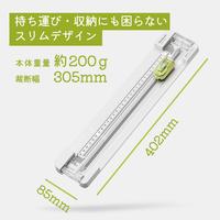 ワンタッチで替え刃の交換可能なカセット式+刃に触れることのない安心構造。A4/B5プリントをB5ノートに綺麗に貼るためのフィットカットガイドライン付き。最大裁断枚数:ストレート刃で5枚。●種別/スライドカッター●サイズ/A4●寸法/W85*D402mm●折りたたみ時寸法/-●高さ/36mm●裁断枚数/ストレート5枚、ミシン目2枚●裁断能力/ストレート5枚、ミシン目2枚●裁断幅/305mm●材質/本体/ABS、レール/ポリカ、刃/ステンレス●質量/200g●カットライン/ストレート、ミシン目●仕様/-●機能/-●電源/-●付属品/-●タイプ/-●裁断方式/スライド式●単位/1台