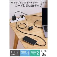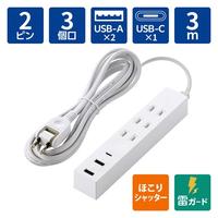 | 商品名 | 電源タップ 3m 3個口 C×1 A×2 白 |