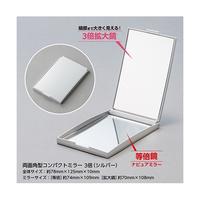 等倍鏡と拡大鏡が付いた角型両面コンパクトミラー。薄くて軽いので持ち運びにも便利です。●色/シルバー●素材/鏡・ガラス、本体・ABS樹脂●包装形態/OPP袋入り●サイズ(mm)/78×125×10●ミラーサイズ(mm)/等倍鏡・74×110、拡大鏡・72×110●本体重量(g)/110●拡大鏡倍率/3倍●単位/1個