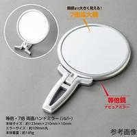 等倍鏡と拡大鏡が付いた両面折立ハンドミラー。手で持つハンドミラーとして、また折立れば卓上ミラーとして使用できます。●色/シルバー●素材/鏡・ガラス、本体・ABS樹脂●包装形態/OPP袋入り●サイズ(mm)/123×210×10●ミラーサイズ(mm)/110丸●本体重量(g)/145●拡大鏡倍率/7倍●単位/1個