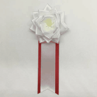 サイズを豊富に取り揃えた記章。●色:白●寸法:タレ部分寸法:130mm●全長:150mm●花径:70mm●材質:バラ=レーヨン、タレ=アセテート●留め具:クリップ・安全ピン付