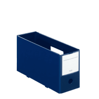 ●ボックスファイル●規格:ハーフサイズ●色:ネイビー●材質:ポリプロピレン●外形寸法:縦163×横319×背幅100mm●底板付き●ラベル付き(片面)●組み立て式