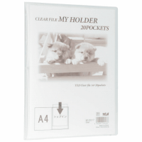 ●カラーバリエーションが豊富な透明表紙タイプ。●外形寸法mm:縦310×横230●ポケット数:20枚●背幅:10mm●色:クリア●エンボス加工:有●ポケット厚:0.05mm●表紙厚:0.4mm●タテ入れ/ヨコ入れ:タテ入れ●中紙:無●規格:A4-S●材質:表紙・ポケット=ポリプロピレン