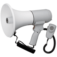●ハンド&ショルダー型メガホン●メガホン・懐中電灯●使用電池:単2または単3核6個(別売)●出力:定格15W(最大23W)●通達距離:約400m●電池持続時間:単2使用時=約13時間(JEITA)、単3使用時=約4時間(JEITA)●色:ライトグレー/グレー●外形寸法:幅210×奥355×高291mm●質量:1090g●付属品:バッテリーアダプター×3●マウス部・ハンドル部抗菌処理済