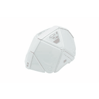 ●色:ホワイト●頭部回り:47~62cm●外形寸法:収納時=約幅355×高203×奥33mm、使用時=約幅285×高150×奥208mm●質量:420g●材質:帽体=PP、中央ジョイント部=ABS、サイドロック部=PC●飛来/落下物用●アゴヒモ:しぼり式