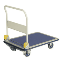 ●板面寸法:W610×D910mm●ハンドル高さ:H901mm●折りたたみ時H:310mm●質量:21.5kg●カラー:ブルー●材質:デッキ=スチール、ハンドル=スチール、キャスター=径130mmノンマーキンググレーゴム●最大積載質量:300kg●フットブレーキ付●ハンドル折りたたみ式●完成品