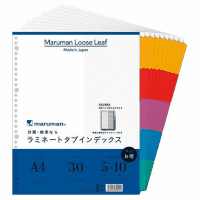 ●インデックス●タテ型●規格:A4-S●インデックス寸法:縦55×横9.5mm●穴数:30穴(2・4穴兼用)●仕様:5色5山6枚1組●材質:上質紙●ラミネート部分:タブのみ●外形寸法:縦297×横241.5mm●入数:10組