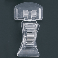 ●POP用品●クリップ式●サイズ:幅27×高50mm●最大挟み幅:6mm●材質:クリップ部=レバー、ポリスチレン、本体=ポリカーボネイト・ステンレス、U字=メタクリル樹脂●入数:5個●差し込めるカードサイズはハガキ大まで。