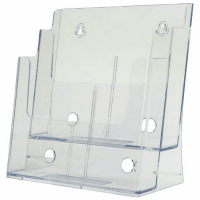 ●パンフレットスタンド●種別:A4判2段●外寸:幅243×奥143×高257mm●内寸:1段目=幅233×奥41mm、2段目=幅235×奥41mm●材質:ポリスチレン●色:クリア
