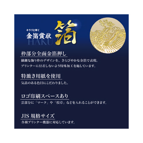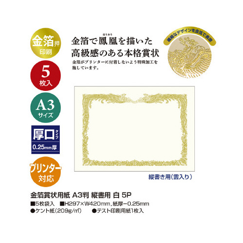 | 商品名 | 金箔賞状用紙 A3判 縦書用 白 5P |