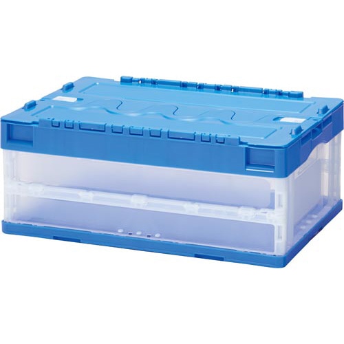 折りたたみコンテナ ブルー フタ付き 60L×15