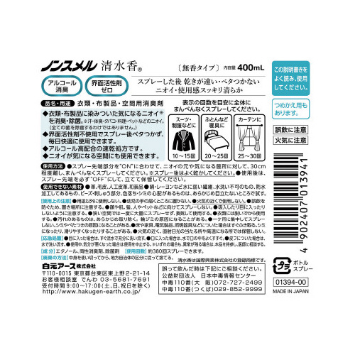 | 商品名 | ノンスメル清水香 無香料 本体 400ml |