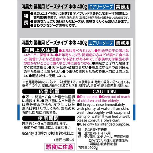 | 商品名 | 消臭力業務用ビーズ本体 エアリーソープ 400g |