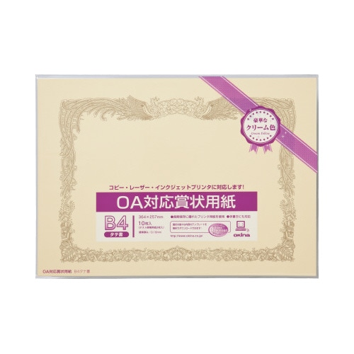 | 商品名 | OA対応賞状用紙クリームB4横型タテ書10枚×5 |