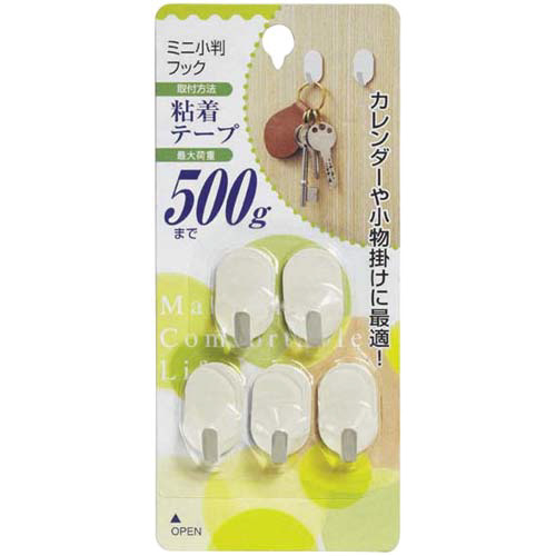 | 商品名 | ミニ小判フック 耐荷重500g 5個入 |