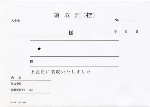 | 商品名 | 複写領収証A6ヨコ型50組二色刷ノーカーボン×10 |