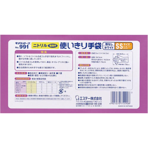 | 商品名 | No.991 ニトリル使い捨て手袋ホワイトSS |
