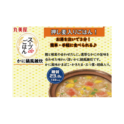 | 商品名 | スープDEごはん <かに鍋風雑炊> 69g 6個※ |