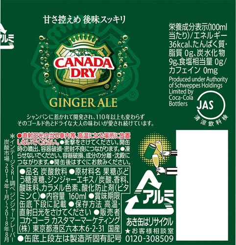 | 商品名 | カナダドライ ジンジャエール 160ml缶 30本※ |