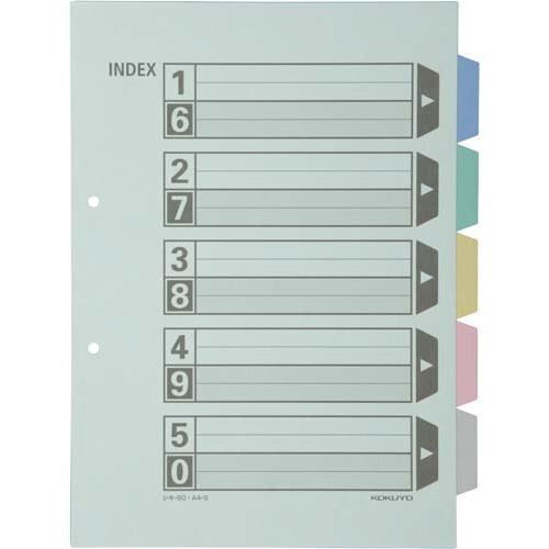 | 商品名 | カラー仕切カードお徳用 A4縦 2穴 5山100組 |