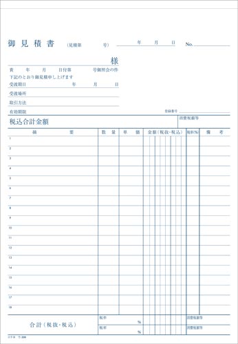| 商品名 | 見積書B5タテ ノーカーボン ウ-306 10冊 |