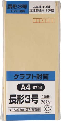 | 商品名 | クラフト封筒 長3 70g 100枚入 |