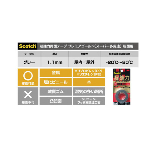 | 商品名 | 超強力両面テープ 多用途 粗面用 幅12mm |