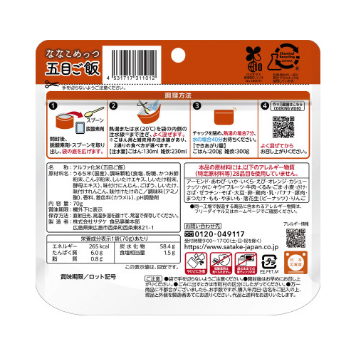 | 商品名 | マジックライス ななこめっつ 五目ご飯※ |