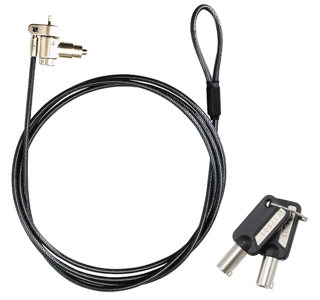 ノートパソコンを盗難から守るセキュリティワイヤー。鍵を回してロックするシリンダー式