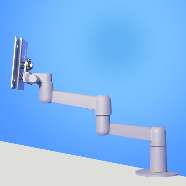 画面回転機能と折り畳んで収納が可能な平行移動3軸構造(最大317.2mm延長:耐荷重2Kg対応)のアーム本体ユニット(シルバー色)です。