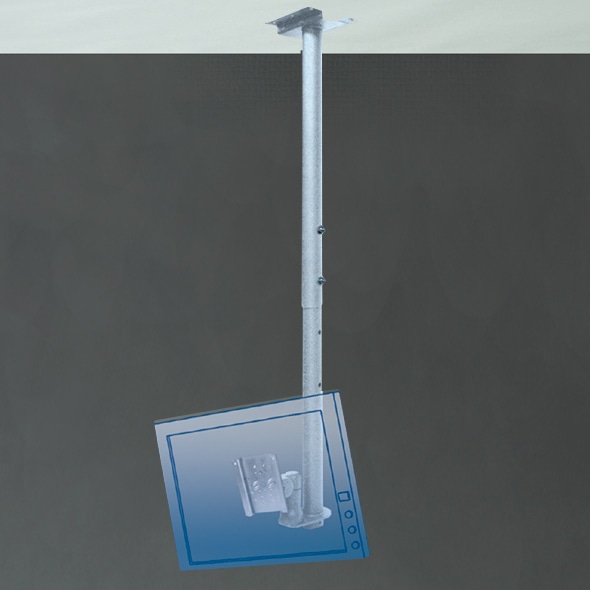 小・中画面ディスプレイモニター天吊り用金具 ロングタイプ(シルバー)