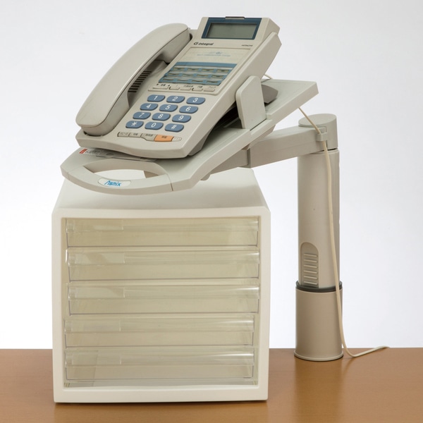 テレホンスタンドブリッジ 適応電話機幅130~220mm、質量1kgまで アーム伸長95mm ベース回転範囲360° 最大クランプ取り付け幅20~60mm