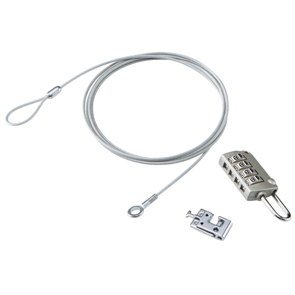 ■セキュリティスロットに取り付けて、パソコンや液晶モニタなどを盗難から守る、ダイヤル錠タイプのセキュリティワイヤーロックです。 ■安心設計のダイヤル錠で、番号設定ミスを防ぎます。 ■鍵不要で設定できるので、紛失によるトラブルから解放されます。 ■ノートパソコンとマウス、テンキーを同時に盗難から守ります。 ■製品種類:4連ダイヤル式南京錠+ワイヤー ■対応スロットサイズ:3×7mmスロット(縦横式) ■その他:※スロットサイズが対応していても、機種によってスロット内部の奥行が対応しない場合がございます。 ■通常、マスター、統一、その他:通常 ■セット内容:ダイヤル式南京錠(ESL-DK02)、ロックパーツ(ESL-RP)、ワイヤー ■寸法:南京錠:幅25×奥行16×高さ66mm(フック太さ3.2mm)、ロックパーツ:幅17×奥行6.2×高さ28.5mm ■材質:ヘッド部:亜鉛合金 ■ワイヤー長さ:1.7m ■ワイヤー太さ:2.2mm ■ワイヤー材質:スチール+ソフトPVCコーティング ■ワイヤー色:シルバー ■重量:約106g