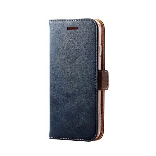iPhone SE 第3世代/SE 第2世代/8/7用レザーケース/手帳型/耐衝撃/磁石付き/ステッチ/クリアケース/ネイビー