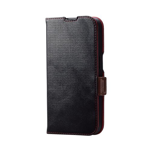 iPhone 15 Pro用レザーケース/手帳型/耐衝撃/磁石付き/ステッチ/ブラック