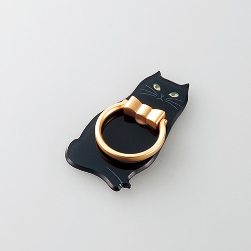 スマートフォン用ストラップ/フィンガーリング/アニマル/黒ネコ