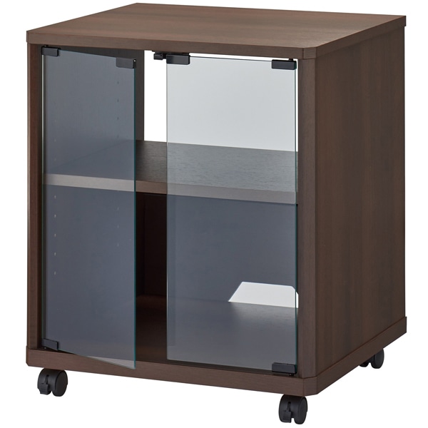 ロータイプ、ハイタイプの2サイズ展開。クリアガラス扉付き。高さ600mm、棚板1枚付属。移動に便利なキャスター付き(内2個ストッパー付)